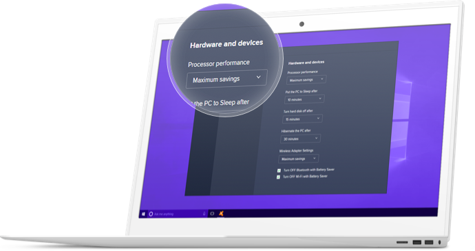 To block unnecessary power drains and improve your PC’s battery life, Avast Battery Saver applies the following actions: