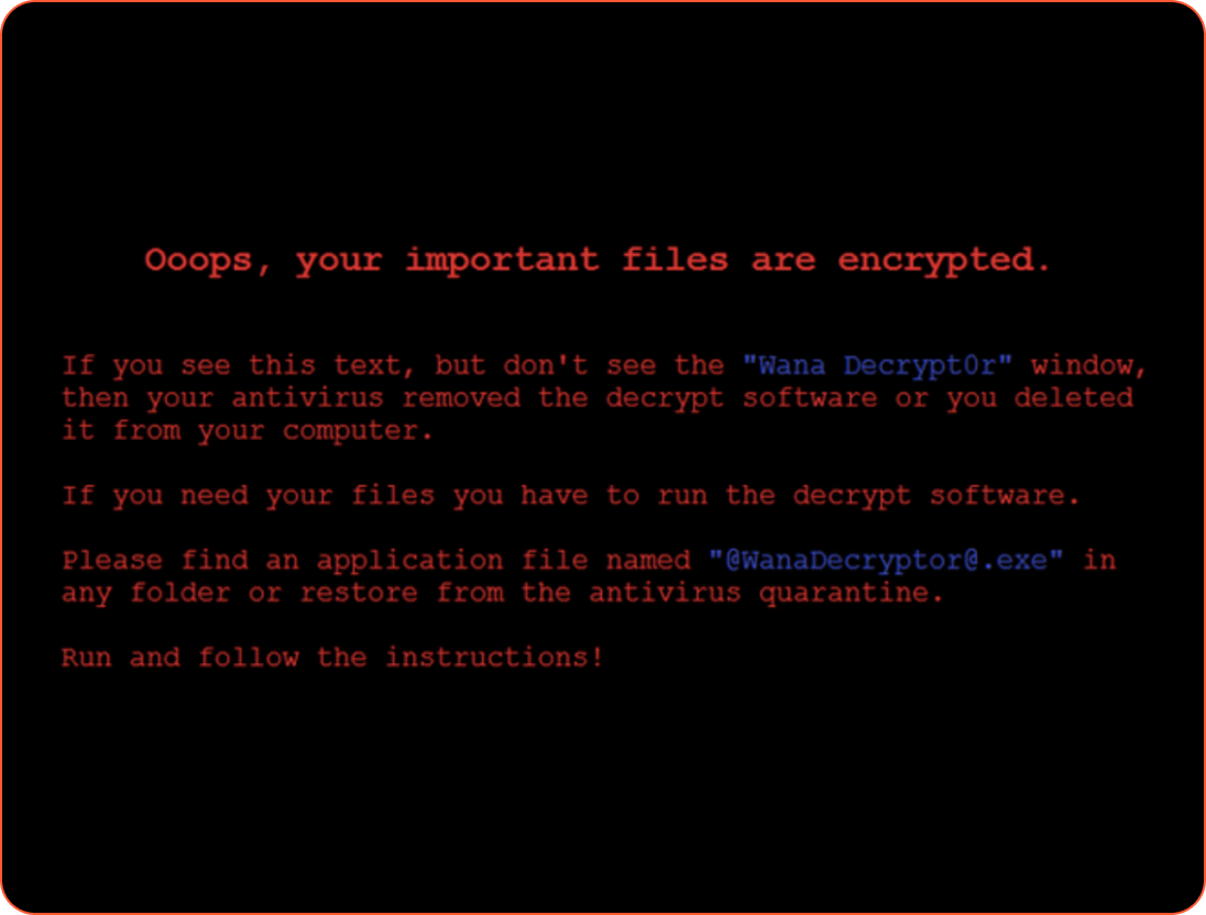 12. maj 2017 skete et af de hidtil største WannaCry-angreb. Den påvirkede virksomheder, myndigheder og sygehuse ved at sprede sig til over 230.000 Windows-pc'er i over 150 lande på blot én dag. Nogle af de store virksomheder, der blev ramt, tæller bl.a. Telefonica, Deutsche Bahn, LATAM Airlines Group, FedEx, samt bilproducenterne Hitachi, Renault og Honda.