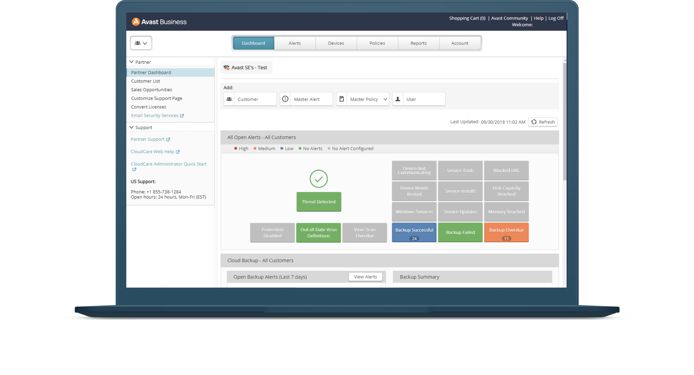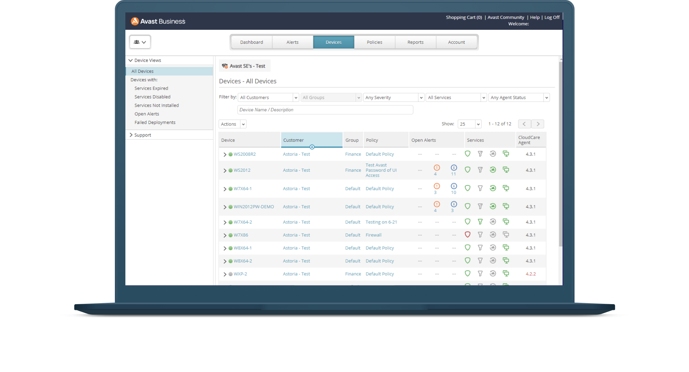Für Avast Essential Business Security und Avast Premium Business Security ist die Online-Verwaltungsplattform optional. Sie können die Lösung auch ohne Verwaltungsfunktionen auf jedem Gerät separat installieren. Mit unserer Online-Verwaltungsplattform, dem Avast Business Hub, sind Sie jedoch in der Lage, alle Ihre Geräte von einem Ort aus zu verwalten. Dort finden Sie leistungsstarke Funktionen für Berichterstellung, Benachrichtigung, Geräte- und Richtlinienverwaltung, Netzwerkerkennung, Remotezugriff, Support-Tools und vieles mehr. Wenn Ihr Unternehmen wächst und sich die Sicherheitsanforderungen ändern, können Sie mit dem Avast Business Hub auf weitere Dienste wie Patch Management und Cloud-Backup zugreifen und alle Ihre Avast-Lösungen über dieselbe Plattform verwalten. Für Avast Ultimate Business Security ist die Online-Verwaltungsplattform erforderlich. Avast Patch Management ist nur als verwaltete Lösung verfügbar.