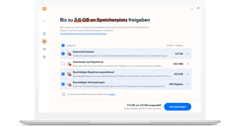 - Ihre Geräte bereinigen und beschleunigen, um die Leistung zu verbessern.