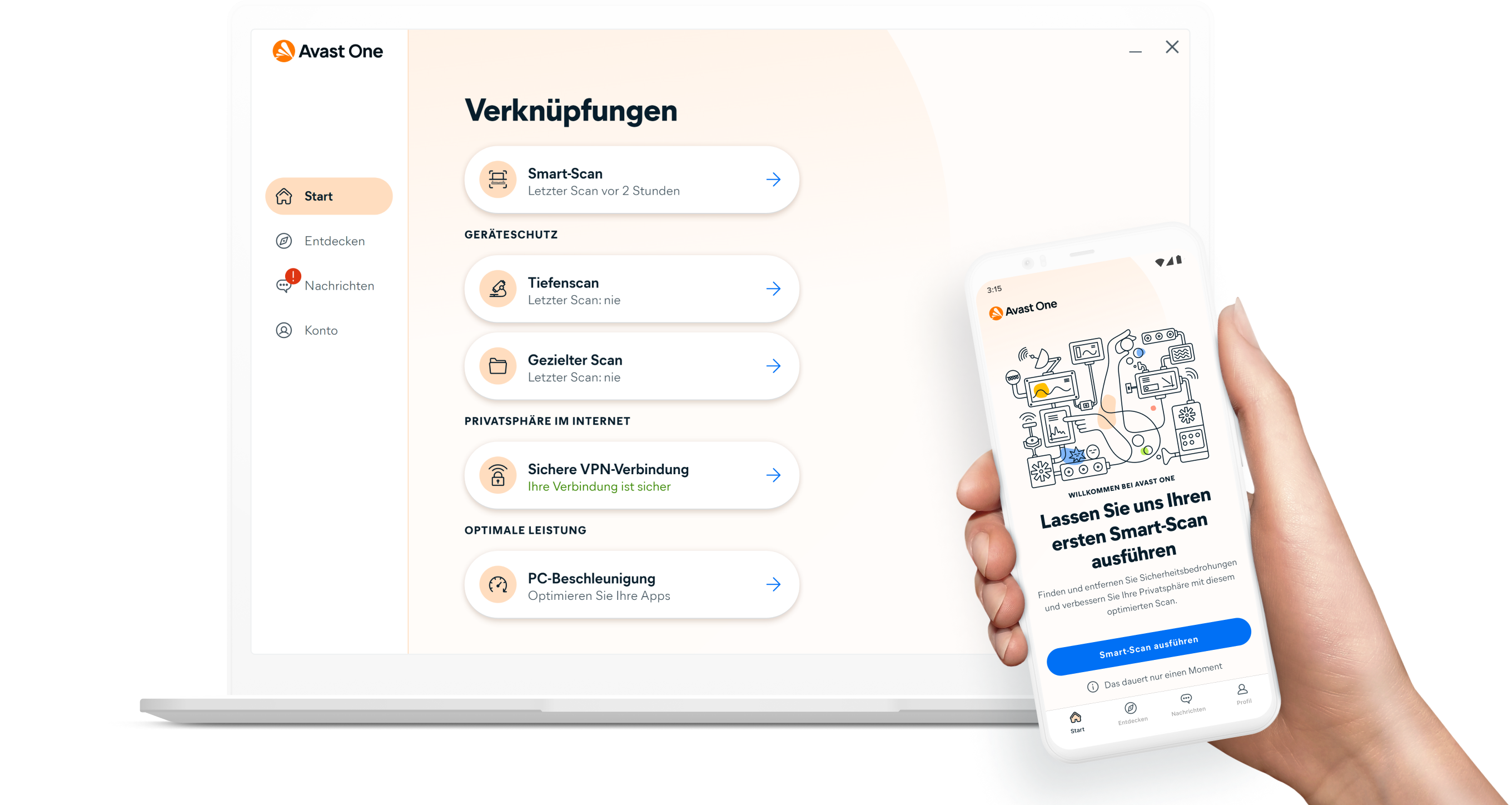 Avast One ist der Komplettdienst, der umfassenden Schutz über preisgekröntes Antivirus, VPN, Datenleck-Überwachung und Gerätebereinigungstools bietet, um Sie privat zu halten und vor modernen Bedrohungen zu schützen.