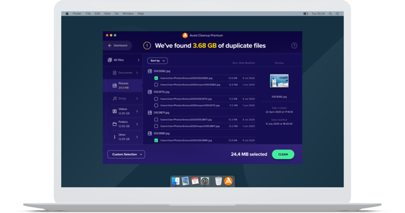 When drive space gets tight, don’t start deleting your precious files. Avast Cleanup Premium for Mac scans your hard disk for hidden junk files, finds duplicates you never knew about, and helps keep your Mac running smoothly.