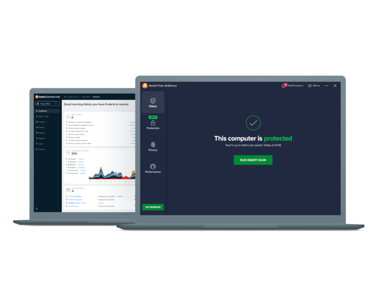 Our selection of cybersecurity solutions (Avast Essential Business Security, Avast Premium Business Security, Avast Ultimate Business Security) provides security you can trust – from home offices to small businesses with 100 devices.
