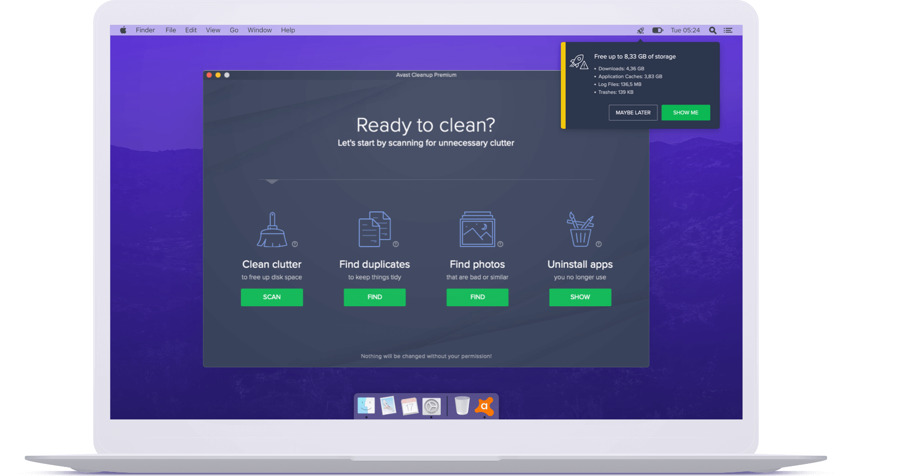 Regain space and boost performance effortlessly with Avast Cleanup Premium for a Mac that’s cleaner, faster, and runs more smoothly.
