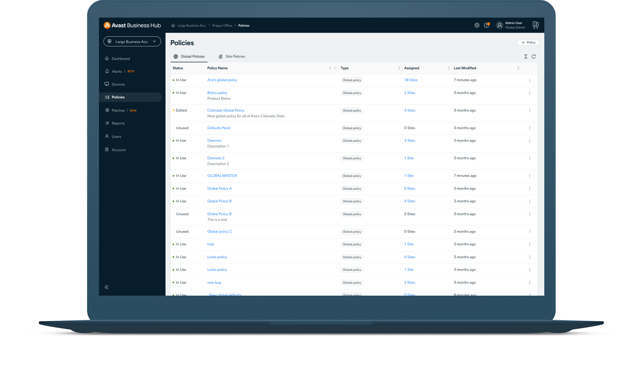 Administre todas sus soluciones de Avast Business desde una única y sencilla plataforma