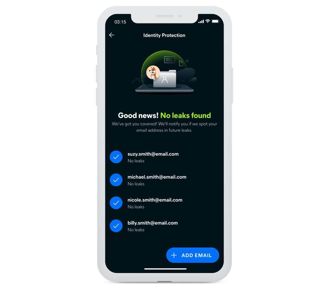 Tietomurtojen valvontatyökalumme käy läpi verkkotietokantoja varmistaakseen, ettei sähköpostiosoitteisiisi liittyviä salasanoja ole vuotanut. Jos salasanasi löydetään tietomurrosta tai -vuodosta, saat siitä ilmoituksen.