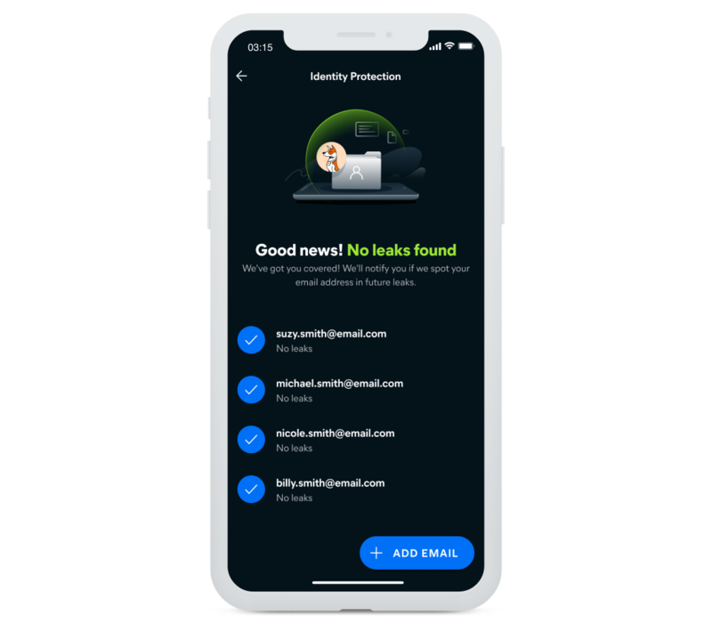 We scannen ook databases en waarschuwen u als iemand een van uw wachtwoorden heeft gelekt. Daarnaast beveiligen we uw foto's tegen nieuwsgierige blikken.