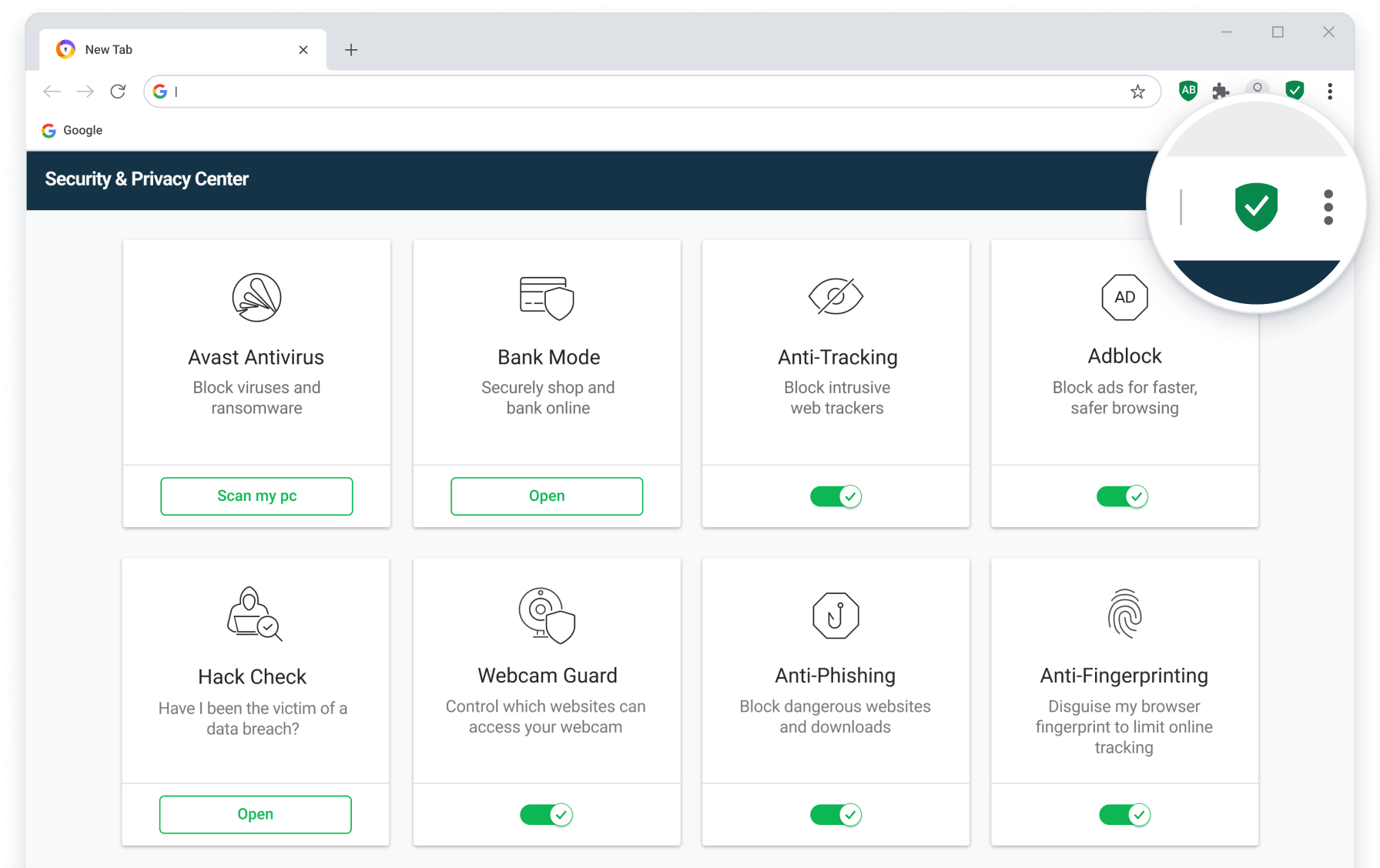Avast Secure Browser’s Privacy Guard uses forward-thinking anti-tracking techniques to help stop online companies from monitoring your daily online habits and interests. It then combines this with ad-blocking technology to give you a more streamlined and private overall browsing experience.